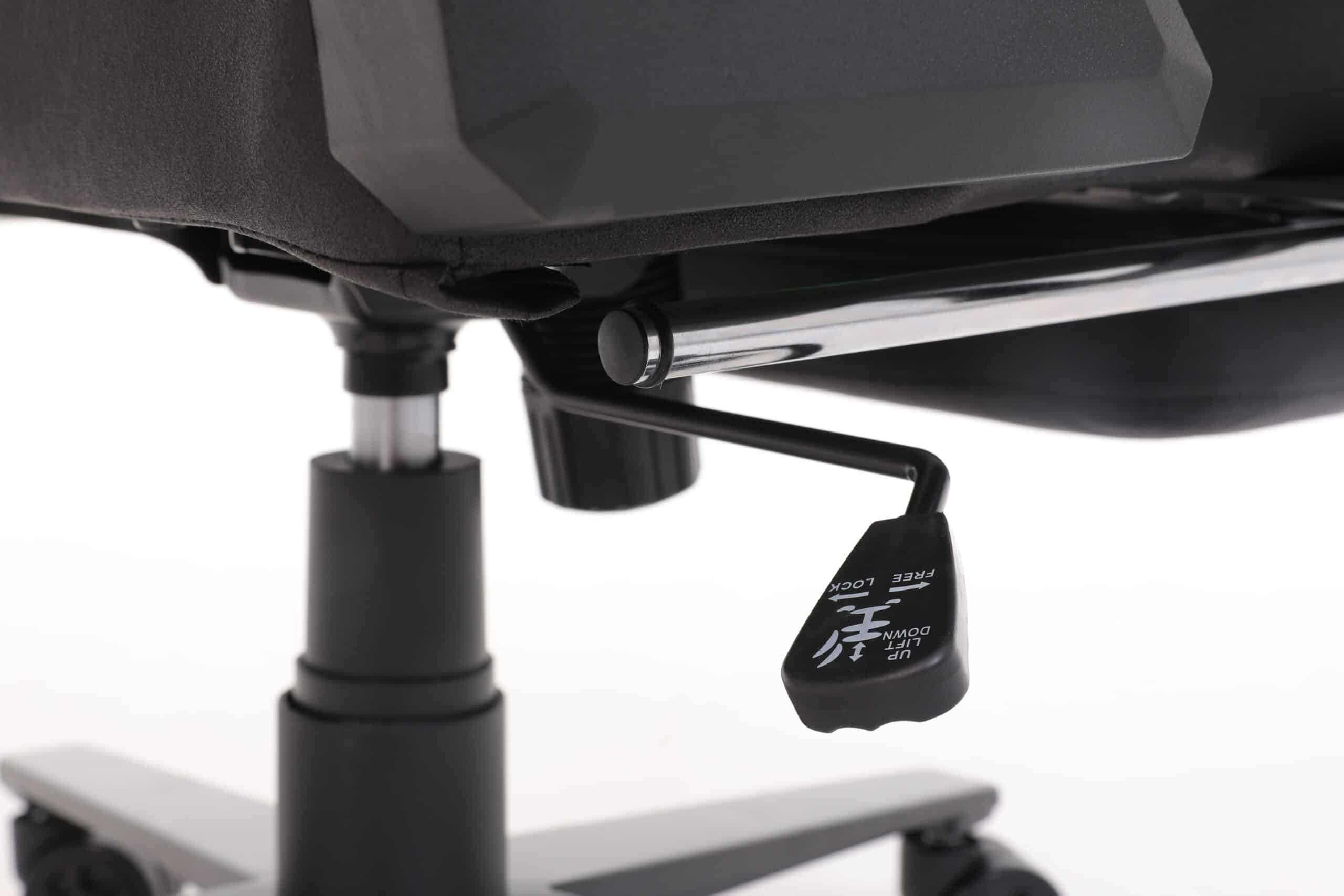 المواد الأساسية: مزيج فاخر من القماش التكنولوجي وأطراف من جلد الكربون، مما يمنح الكرسي مظهراً عصرياً وأداءً استثنائياً.